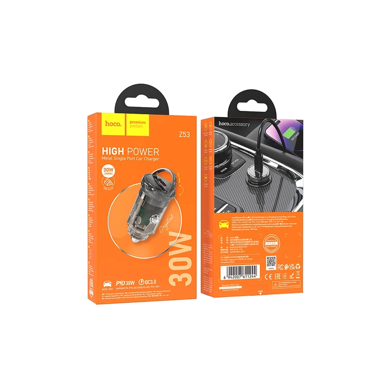 شارژر فندکی هوکو مدل Z53 – شارژ فوق سریع 30W با فناوری PD در خودرو